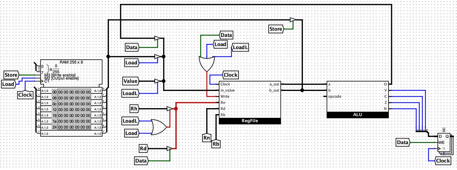 I really enjoyed my computer architecture class this semester, however, we never actually built a CPU end-to-end, we only did it conceptually. So during the holidays, I challenged myself to see if I could design my own CPU end-to-end in logism. Lots of fun!