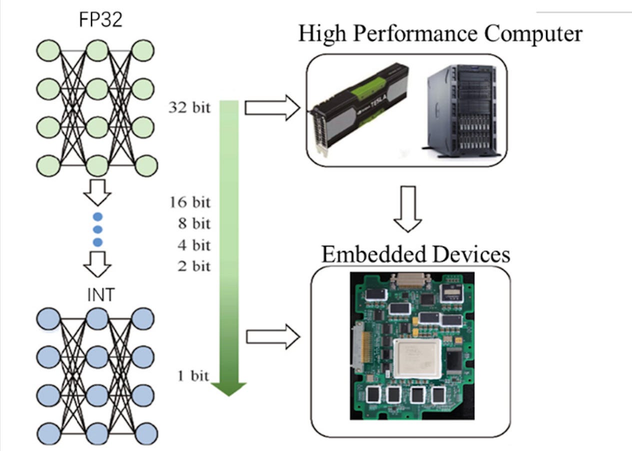 There are many different approaches for how they can be done, but the most common way, and what I’ve been investigating is by reducing the precision of the model's weights from high-precision floating-point numbers (like 32-bit floats) to smaller, more compact integers (like 8-bit integers). This makes the model more efficient, with smaller memory requirements and faster computation. All the research I’ve been doing has been working on embedded systems so this compression is the only way to actually train models in these very limited spaces.